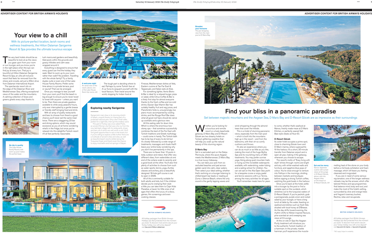 Is 2026 the year of exotic getaways and luxury escapes? British Airways Holidays captures the attention of Saturday readers of The Times and The Daily Telegraph with bold multi-page travel content