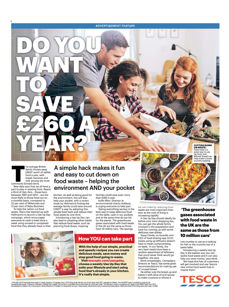 Teaming up with Hellmann’s to launch the ‘Use Up Day’ campaign, the strip ad then linked to an advertisement feature inside that day’s print edition detailing tips to save money (and help the environment) by avoiding food waste.