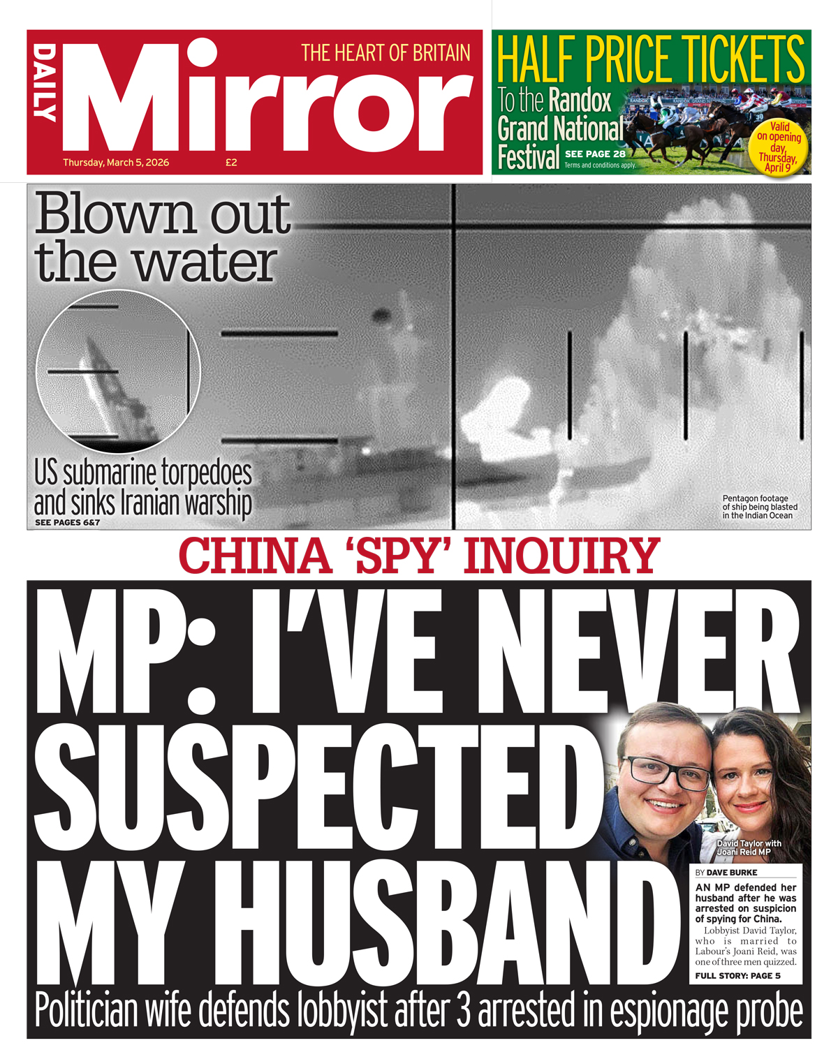 Elsewhere: A former Labour adviser married to a Labour MP is among three men who have been arrested on suspicion of spying for China.