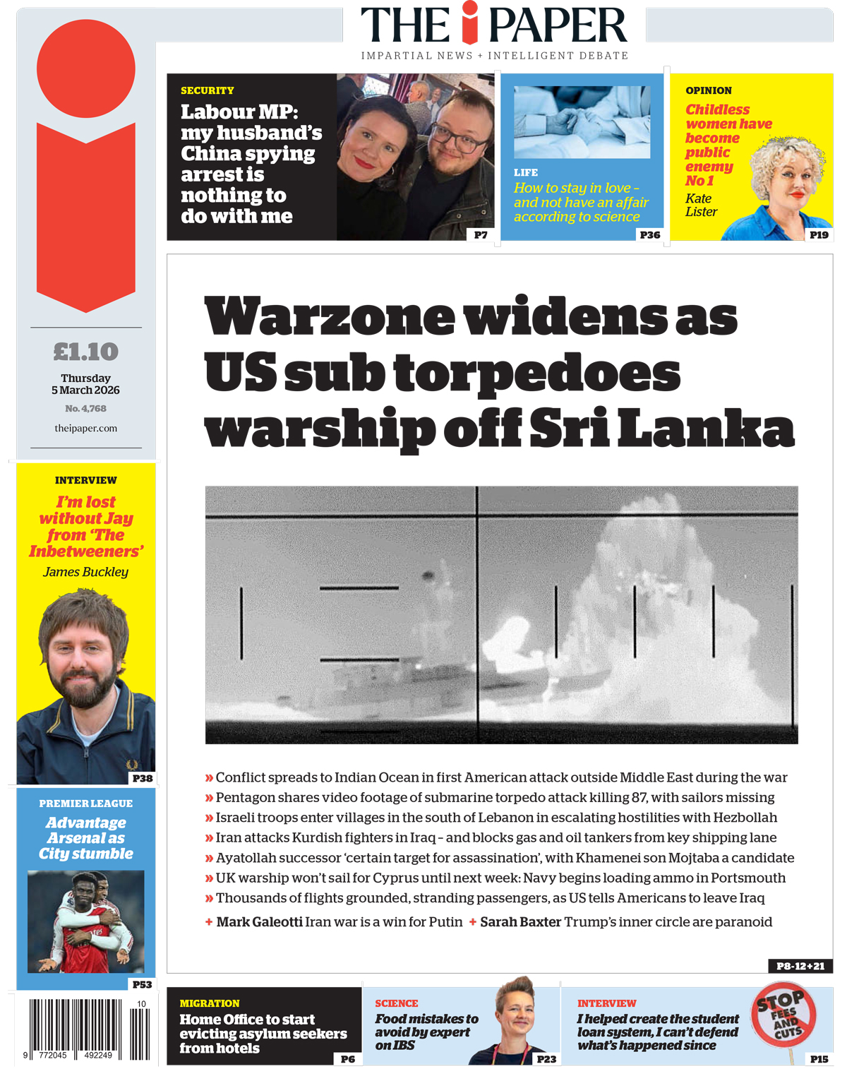 A US submarine fires a torpedo at an Iranian warship off the south coast of Sri Lanka as the Trump administration follows through on its threats to destroy Tehran’s military and political leadership.