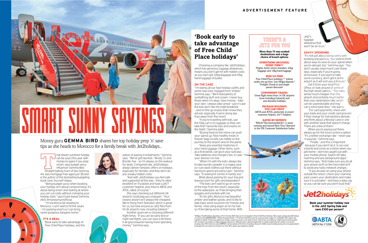As part of the holiday operator’s long-term brand partnership with The Sun, Jet2holidays enlists money guru Gemma Bird for tips to get to best bang for your buck (or euro… or pound… or even dirham…)
