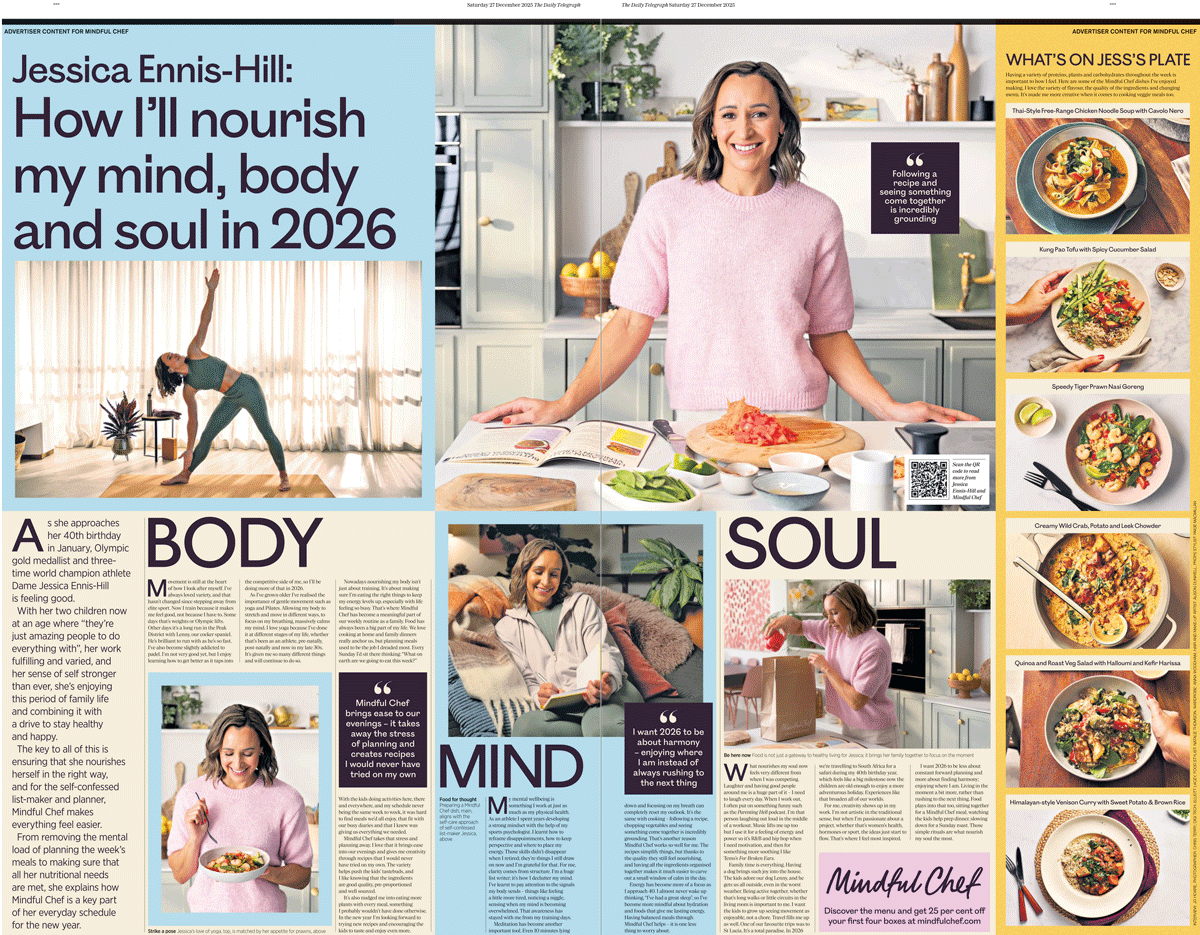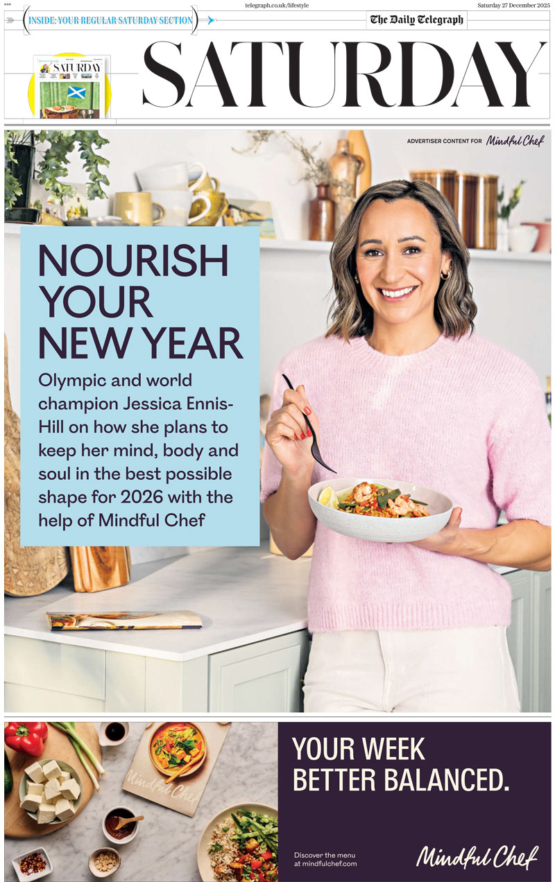 The content, featured in a cover wrap around the news brand’s printed ‘Saturday’ supplement, shows how the London 2012 champion integrates Mindful Chef into her family’s everyday routine. This is accompanied by a further feature in ‘The Telegraph Magazine’, looking at the science behind habit-forming when it comes to building a healthy lifestyle.