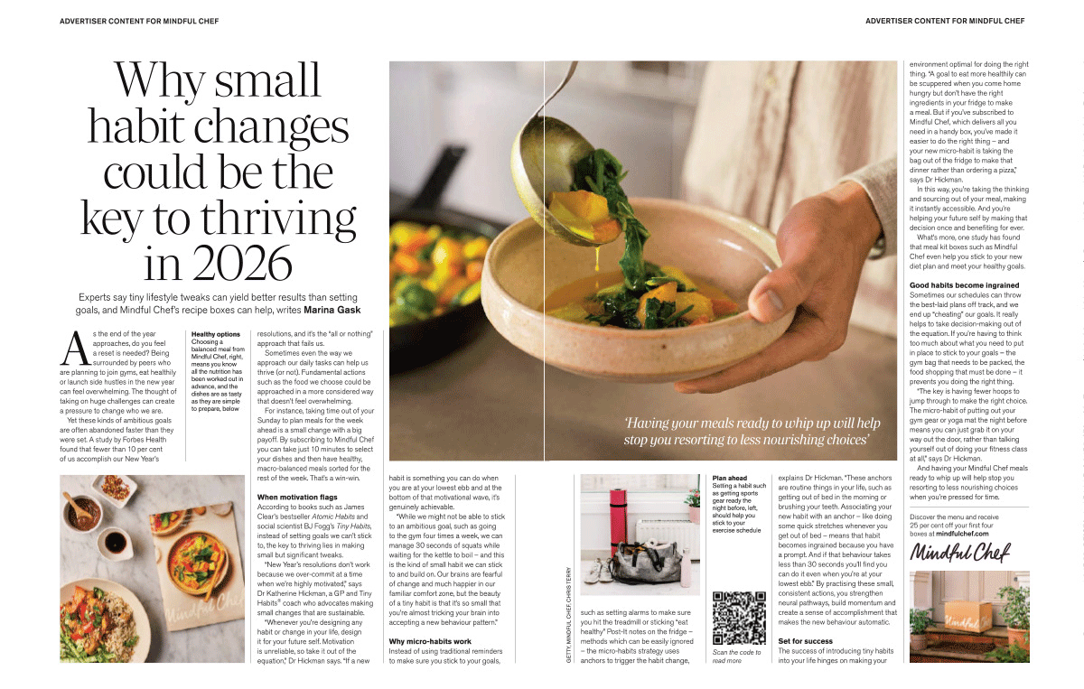 Enlisting the help of British Olympic legend Jessica Ennis-Hill, two brand partnership features from Mindful Chef demonstrate how readers can balance mind, body and soul in the new year