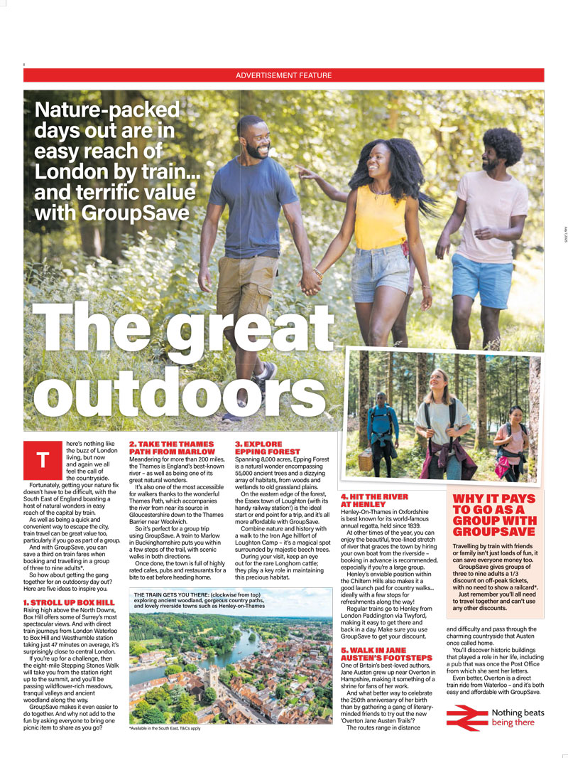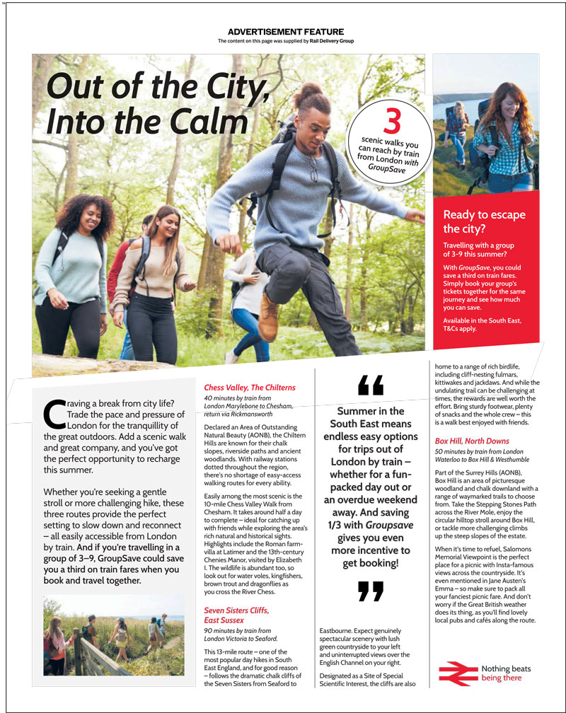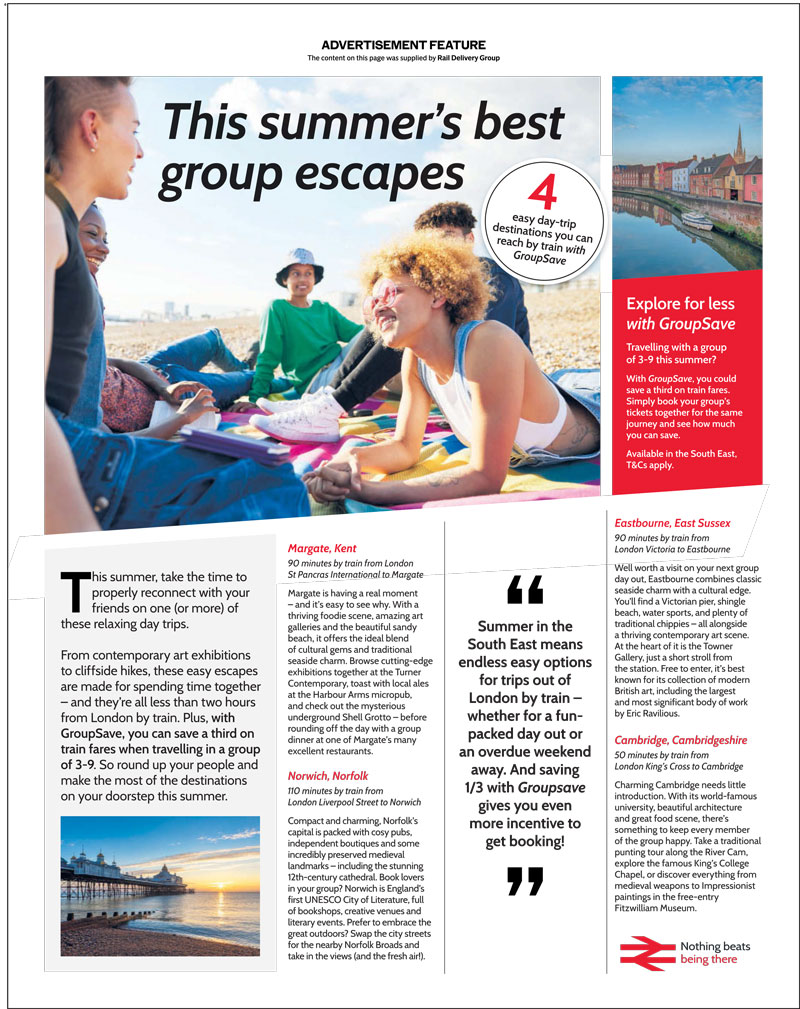 Through a campaign booked and planned by Spark Foundry and featured in the two news brands across June and July, National Rail gives eager travellers plenty of inspiration for outings this summer — all reachable by train, of course.