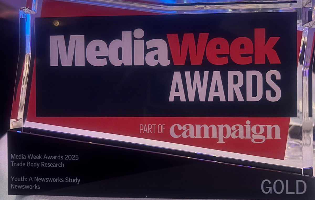 The Newsworks team took to the stage to pick up Trade Body Research gold for “Youth: a Newsworks study” – an impressive third award this year for our research project.