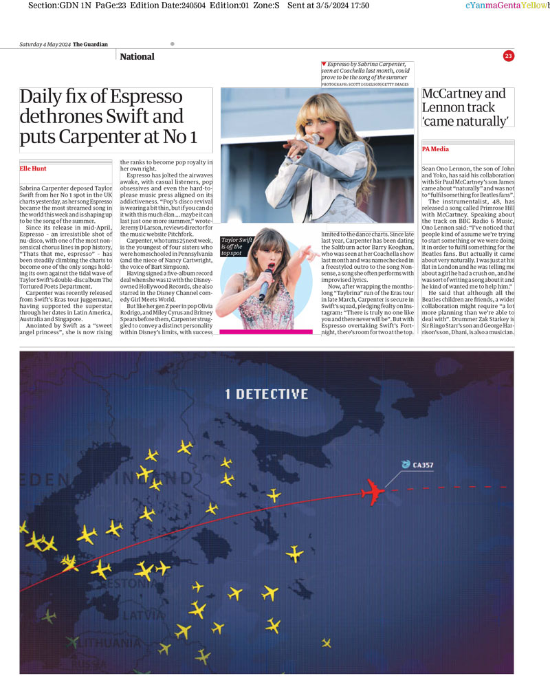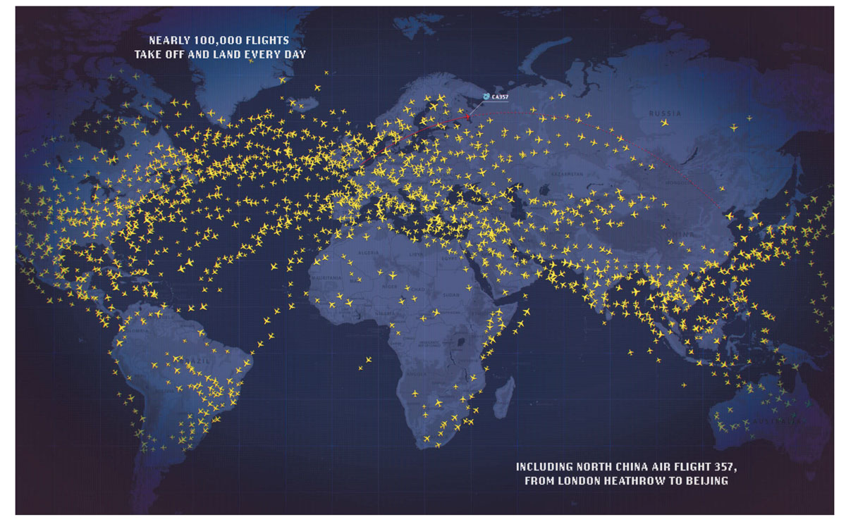The campaign creates a linear narration effect by linking together several ad spaces across last Saturday’s print edition of the Guardian, building tension as it moves from describing the whole flight map to one very particular high-stakes flight on its way to Beijing.