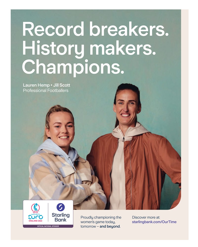 “Record breakers. History makers. Champions” says one Starling Bank ad. “Proudly championing the women’s game today, tomorrow – and beyond.”