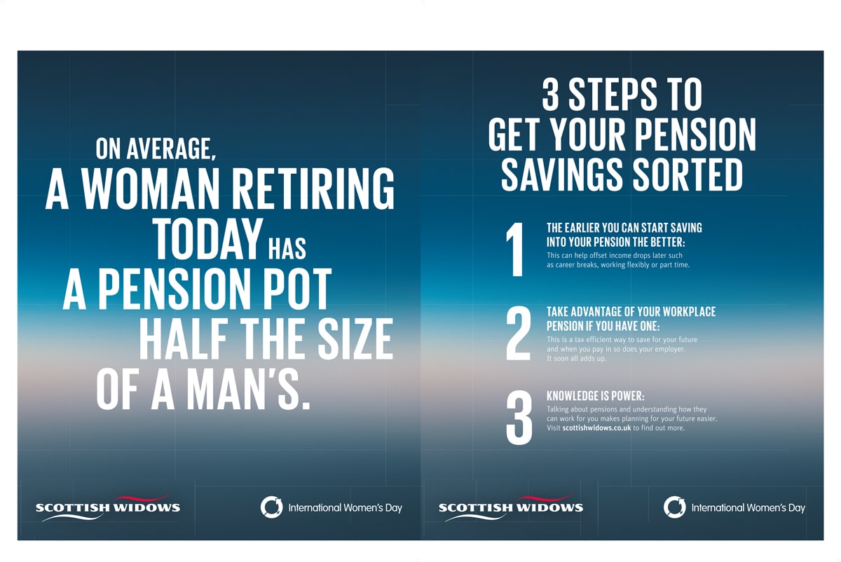 The pensions and insurance company uses International Women’s Day and today’s Metro cover wrap as a platform to ask a simple question: why do women have half the pension as men? Pointing readers to its website for more information, Scottish Widows gives three steps to get started – get started early, take advantage of workplace pensions and get knowledgeable about how pensions work.