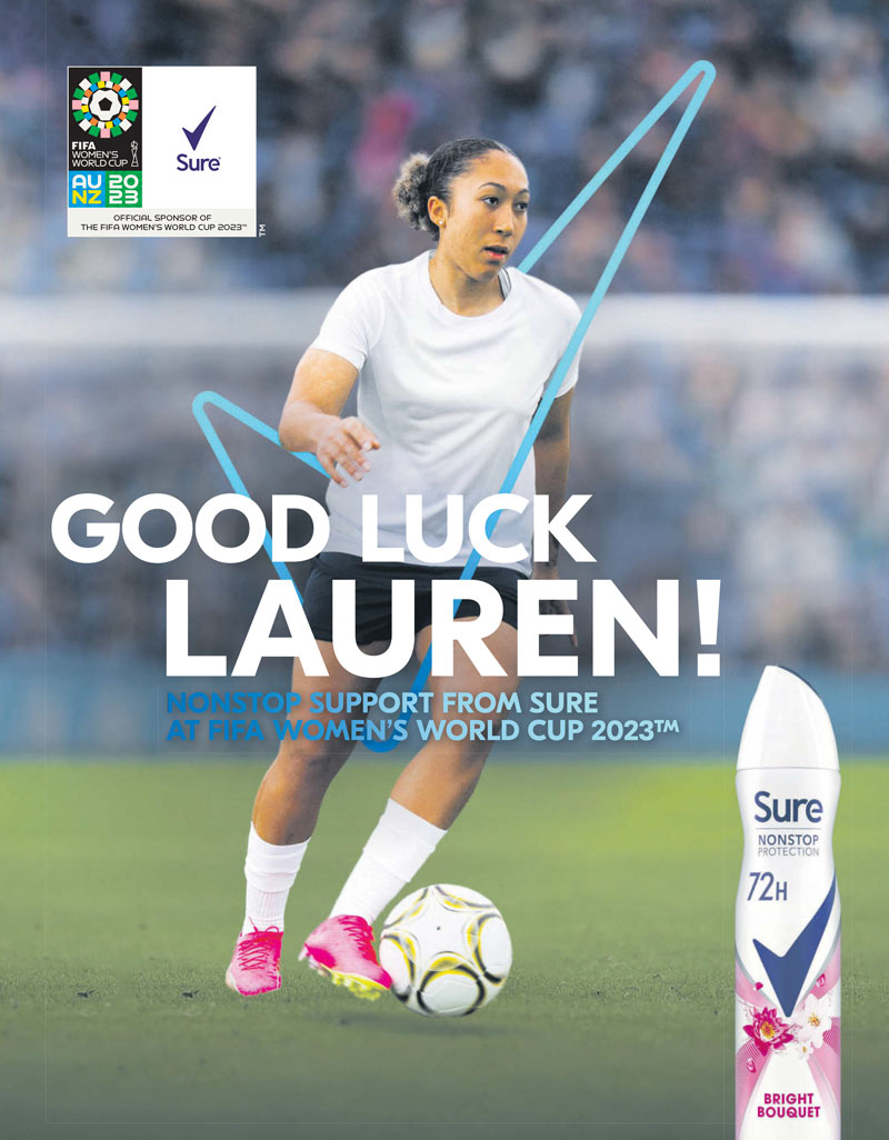 Readers ‘sure’ can feel the anti-perspirant brand’s support for England’s Lauren James the Women’s World Cup.