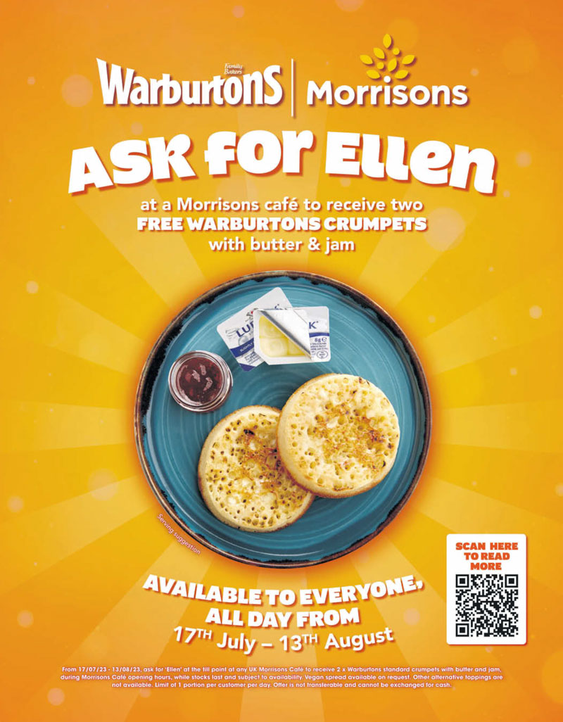 Don’t blow your own crumpet! Morrisons cafes offer two free tasty treats when you ask for Ellen