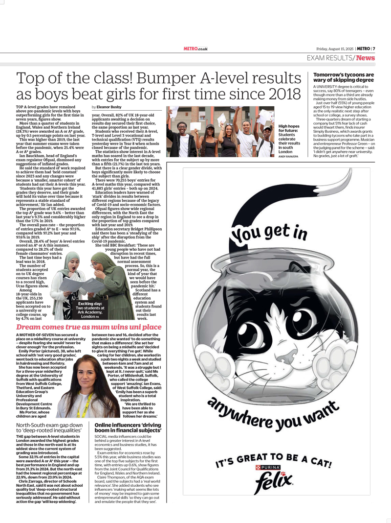 From grades to greats, the (school) results are in and brands are top of the class in this weeks stand out ads. Felix offers readers support, Tesco provides new uniforms ahead of the new term and Premier Inn presents well-earned rests…