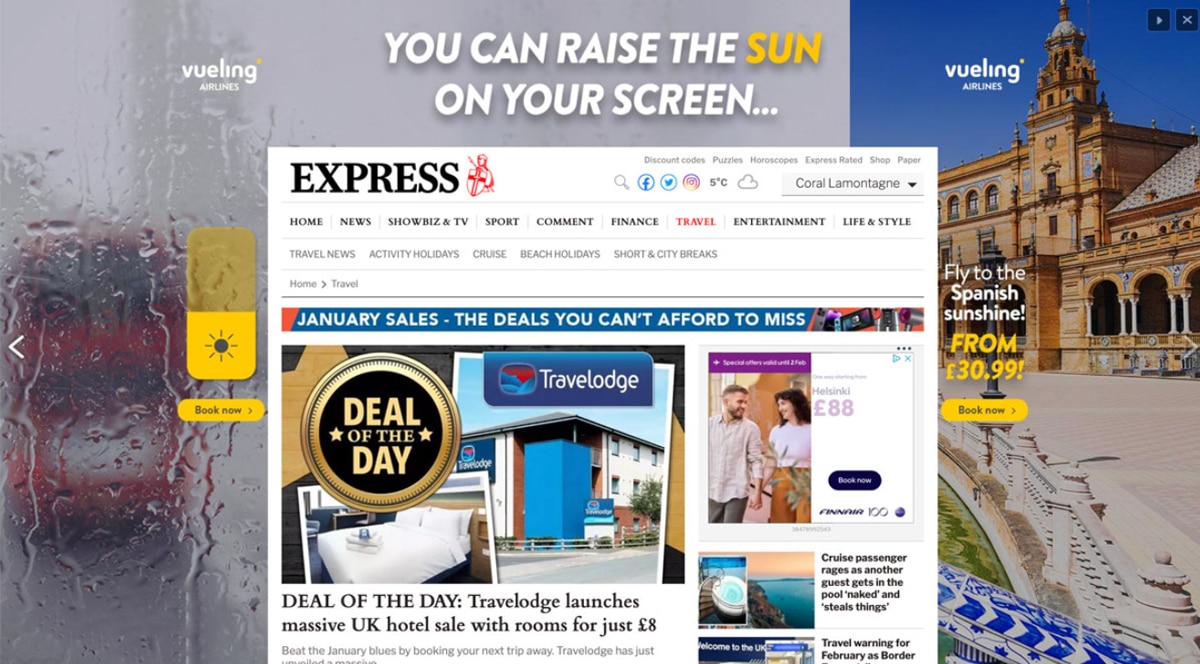 With the nights only beginning to shorten, a bit of sunshine can be hard to come by. In this ad, the low-cost airline urges readers online to turn up the brightness and set their sights on weather that’s a little more… reliable.